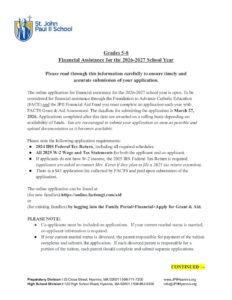 FY27 Grades 5-8 Financial Aid Information